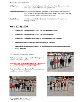 Sie haben Interesse an Eiskunstlauf, weitere Informationen, Kontaktdaten, Trainingstage und Termine erhalten Sie nachfolgend: